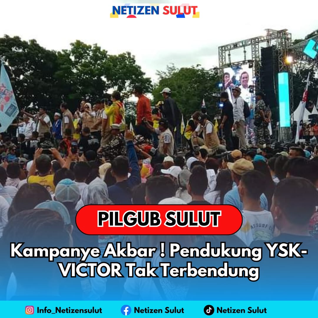 Netizensulut.com, SULUT – Dalam Pergelaran Kampanye Akbar Calon Gubernur dan Wakil Gubernur Provinsi Sulawesi utara, Pendukung Paslon YSK-VICTOR tak terbendung mendatangi Lapangan Koni-Sario, Kota Manado. Kamis (21/11/2024).