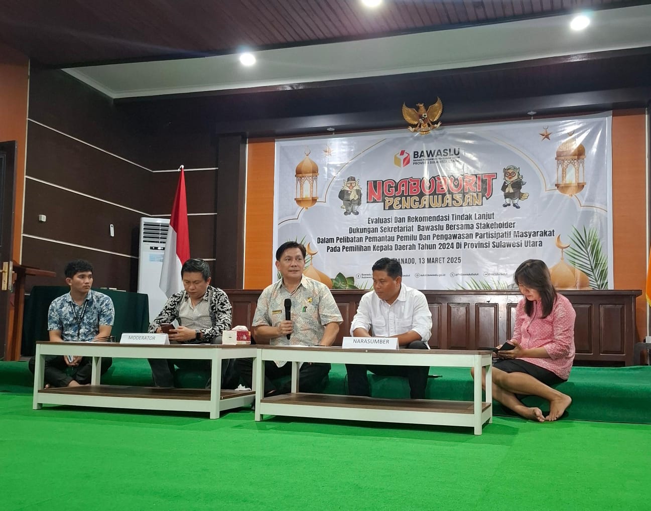 Netizensulut.com, SULUT – Bawaslu Sulut melaksanakan kegiatan “Ngabuburit Pengawasan” dan Membahas Evaluasi dab Rekomendasi tindak lanjut dukungan Sekretariat Bawaslu bersama Stakeholder dalam Pelibatan Pemantau Pemilu dan Pengawasan Partisipatif Masyarakat pada Pemilihan Kepala daerah tahun 2024 di Provinsi Sulawesi utara.