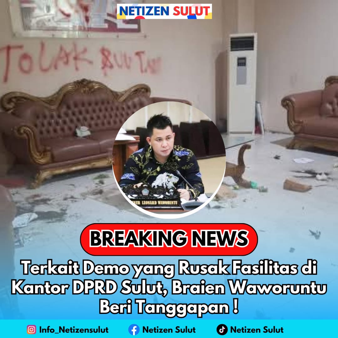 Netizensulut.com, SULUT – Ketua Komisi I DPRD Sulut Braien Waworuntu berikan tanggapan soal Pengrusakan fasilitas Kantor DPRD yang dilakukan para Demonstran kemarin.