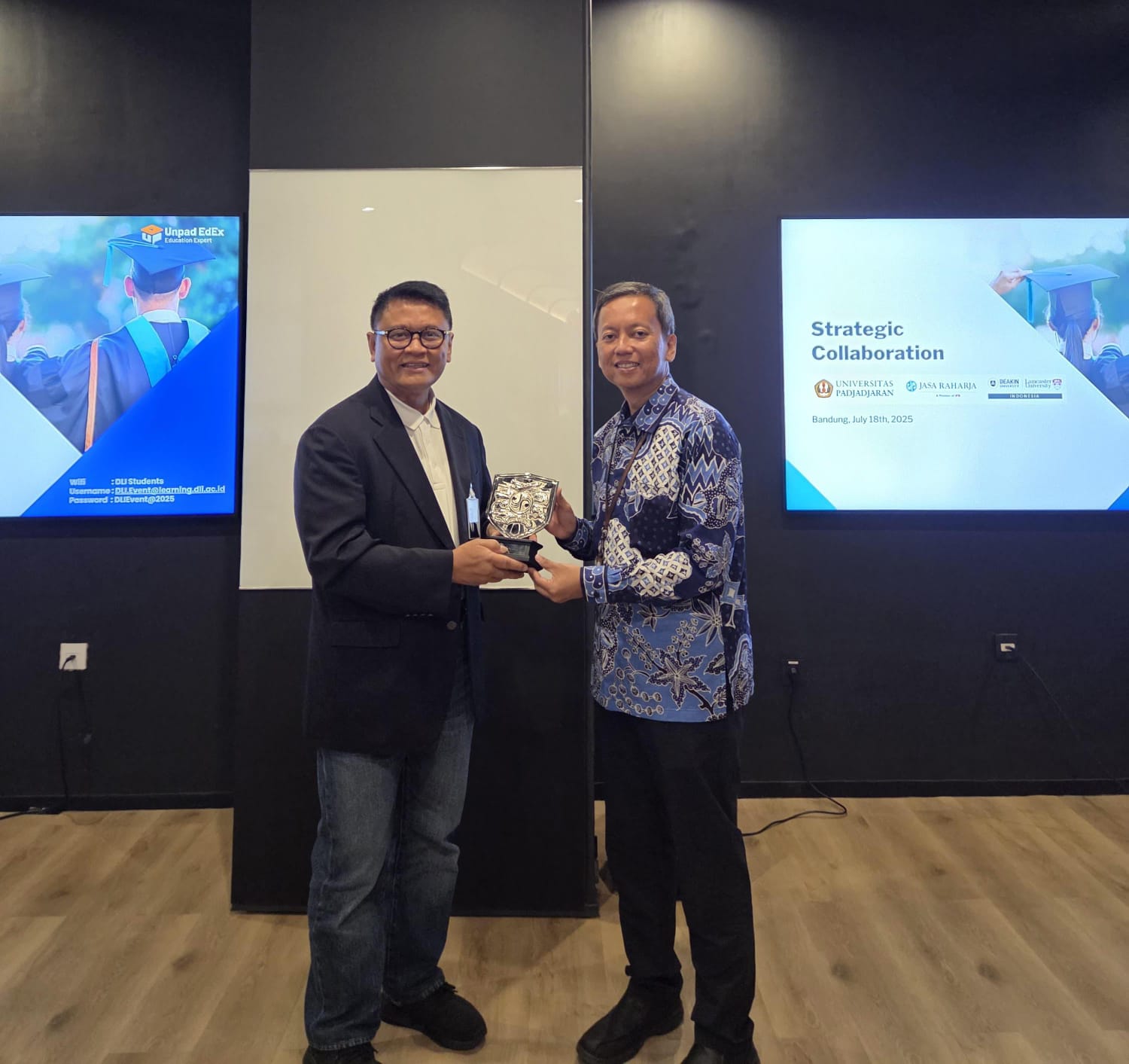 Acara ini dihadiri oleh Kepala Divisi Human Capital Jasa Raharja Akhdiyat Setya Purnama (secara daring), Kepala Urusan Pengembangan Human Capital Jasa Raharja Made Deda Purwantini, Rektor DLI Prof. Greg Barton, Representatif Navitas Education Erin Old, Komisaris Unpad EdEx Prof. Diana Sari, Direktur Unpad EdEx Arif Gustaman, serta Kepala Program Studi Magister Manajemen FEB Unpad Prof. Sunu Widiyanto, SE., M.Sc., Ph.D.