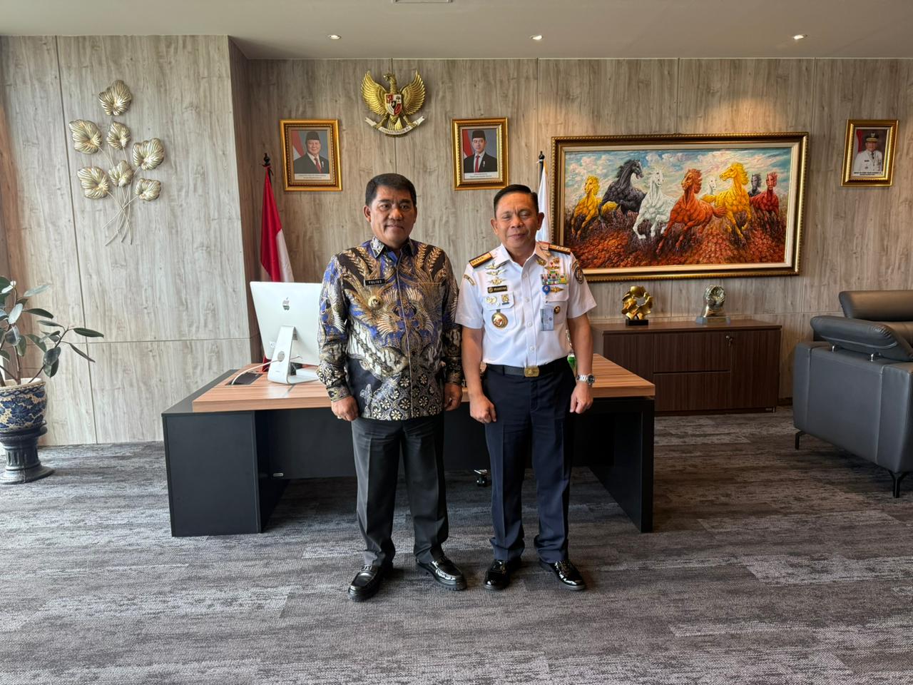 Setibanya di kantor Bakamla RI, Gubernur Sulut Mayjen TNI (Purn) Yulius Selvanus, SE di sambut baik oleh Kepada Bakamla RI, Laksdya TNI Dr. Irvansyah, S.H.,M.Tr. Opsla.