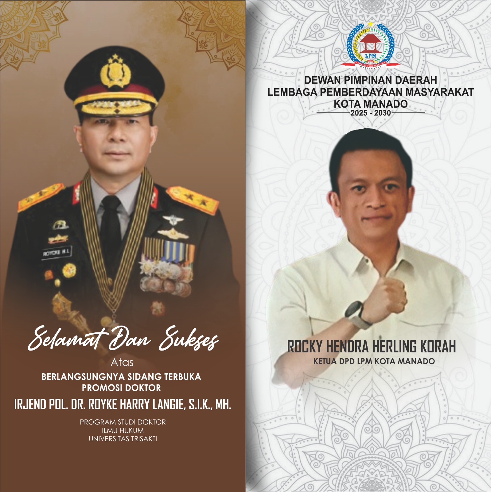 “Atas nama Lembaga Pemberdayaan Masyarakat (LPM) Kota Manado, saya menyampaikan selamat dan sukses yang setinggi-tingginya kepada Bapak Kapolda, IRJEN POL Dr. Royke Harry Langie, atas gelar Doktor Hukum dari Universitas Trisakti,” ujar Rocky Korah pada Selasa 11 November 2025.