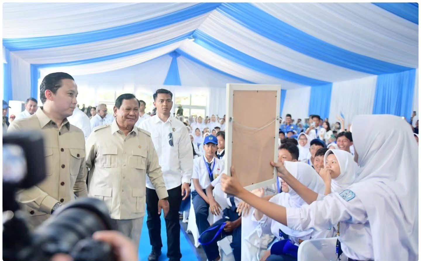 Dalam momen peluncuran, Presiden Prabowo Subianto secara langsung menyaksikan demonstrasi penggunaan panel interaktif oleh siswa dan guru.