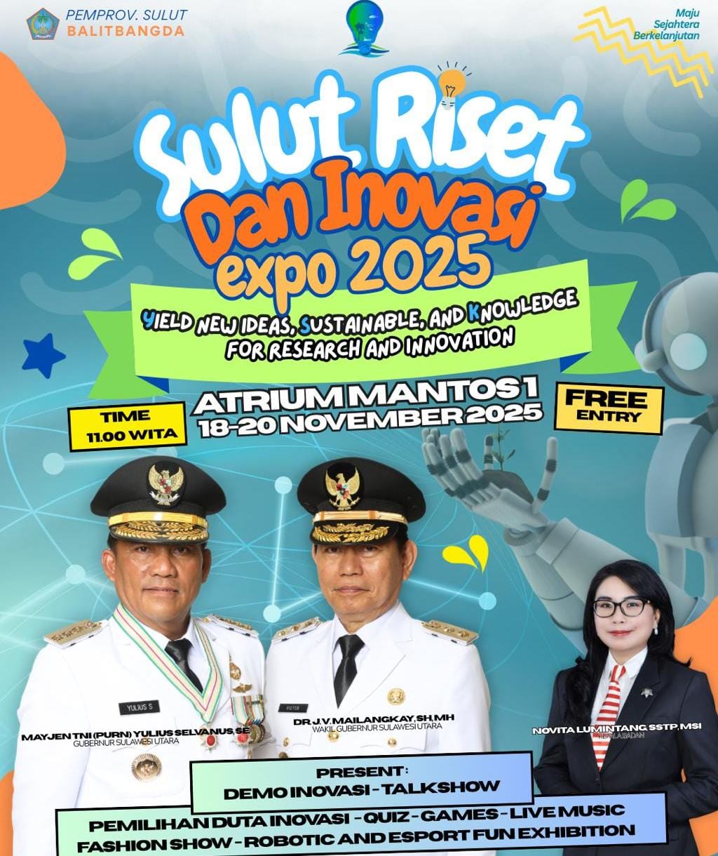 Netizensulut.com, Manado – Dengan mengusung tema “Yield New Ideas, Sustainable and Knowledge for Research and Innovation,” Pemerintah Provinsi Sulawesi Utara (Pemprov Sulut) siap menggelar acara besar tahunan, yaitu Sulut Riset dan Inovasi Expo 2025.