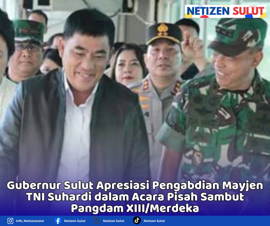 Dalam sambutannya, Gubernur Yulius Selvanus menyampaikan apresiasi dan penghargaan yang tinggi atas dedikasi serta kontribusi Mayjen TNI Suhardi selama menjabat Pangdam XIII/Merdeka.