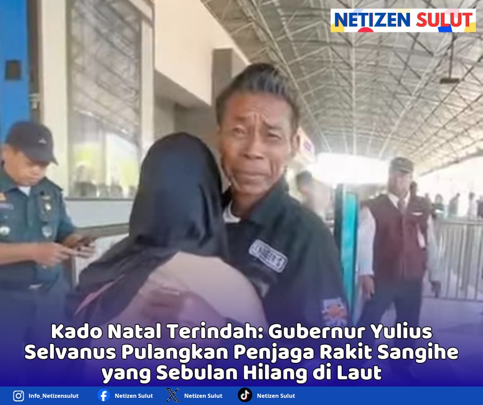 Netizensulut.com, MANADO – Suasana haru menyelimuti kedatangan Charles Rompas, seorang penjaga rakit asal Kabupaten Kepulauan Sangihe, saat menginjakkan kaki kembali di tanah Sulawesi Utara pada Jumat pagi (19/12/2025).