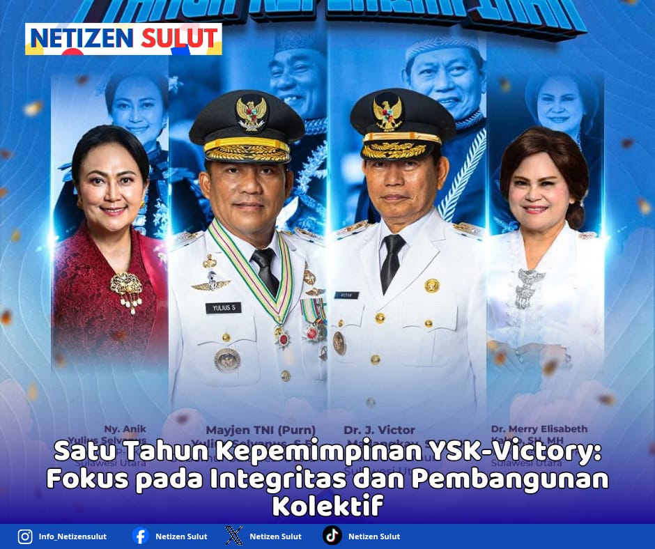 Netizensulut.com, MANADO – Gubernur Sulawesi Utara, Mayjen TNI (Purn) Yulius Selvanus, SE, bersama Wakil Gubernur Dr. J. Victor Mailangkay, SH, MH, menggelar acara syukur memperingati satu tahun masa bakti kepemimpinan mereka periode 2025-2029.